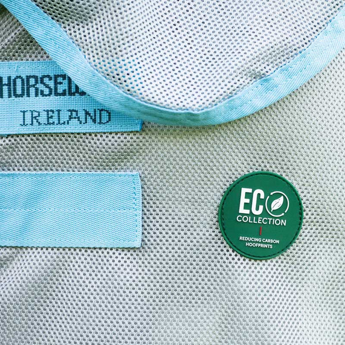 Sustainable and incredibly breathable, the skin-soft durable rPET polyester mesh also has strong sun-reflecting properties, giving you peace of mind when choosing this sheet. Straight front closure, extended belly coverage with three surcingles, an extra-long tail flap and a tail strap keep this sheet secure, the shine enhancing mane, shoulder and tail flap help reduce friction while our unique dual arch design allows your horse the freedom to move, graze and play.