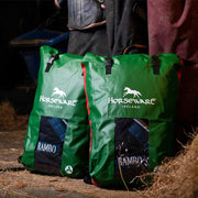 Introducing Horseware's new ”Bag for Life” (included with every new Rambo Turnout)! An innovative packaging solution for the Rambo® turnout range. Welded construction ensures the Horseware Ireland “Bag for Life” will stand up to the elements and provide the ideal storage bag for Horseware Ireland blankets during off season. It can also be used as an equestrian gear bag. It features a stash pocket on side, roll top closure for fast access, and adjustable shoulder straps for comfortable wear.