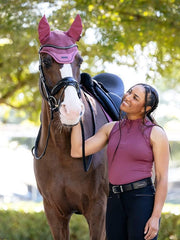 Decrease sharp sounds and improve your horse's relaxation and concentration with this peak-performance Acoustic Ear Bonnet. Hand crocheted in a specialist patterned knit, it has a sporty low-line cut. Coordinated soft shell patch trim and matte silicone LeMieux branding create a sophisticated look.