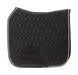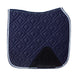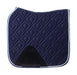 The Equinavia Stockholm Jump Pad is designed with a contoured shape and a fully mesh spine to enhance air circulation, ensuring your horse stays comfortable during rides. Made from durable poly fabric, it is easy to care for. With a 10mm foam fill and tricot waffle weave backing, it provides soft cushioning and moisture-wicking properties. The pad features a double diamond quilt pattern and an ultrasuede patch at the girth loop for added grip. Stylishly finished with single piping and twisted cord embellishments. This is also available in a jump-shaped pad (SKU #E17004).