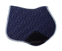 The Equinavia Stockholm Jump Pad is designed with a contoured shape and a fully mesh spine to enhance air circulation, ensuring your horse stays comfortable during rides. Made from durable poly fabric, it is easy to care for. With a 10mm foam fill and tricot waffle weave backing, it provides soft cushioning and moisture-wicking properties. The pad features a double diamond quilt pattern and an ultrasuede patch at the girth loop for added grip. Stylishly finished with single piping and twisted cord embellishments. This is also available in a dressage-shaped pad (SKU #E17005).