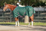 Give your horse the protection it needs with our Signature Collection Heavy Weight Turnout. The Surefit® cut is designed to fit a wider range of body types, from narrow and lanky to broad and stocky. It features a 1200D stain resistant treated ripstop shell that is waterproof and breathable, plus 300g of insulation and a CoolPlus® lining that pulls moisture away from the body to keep your horse dry. Additional features include quick clip front closures with adjustable buckles, a padded wither, leg arches which provide additional adjustability for the detachable 2" criss cross belly straps with snaps and D-rings, removable adjustable leg straps, and removable tail cover.