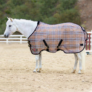 Provide comprehensive summertime protection for your pony with the Protective Sheet with Surefit®. Designed to fit a wider range of pony types, from narrow and lanky to broad and stocky, it is made of ultra-durable Textilene®, a 1000 x 2000 denier mesh that provides 73% UV protection, 78% air permeability, fly and insect protection, and fire resistance, while not absorbing heat from the sun or your pony. The weave actually helps shorten grooming times by not only keeping dirt and debris from the coat, but by actually working the coat as they move, bringing out the natural oils and removing loose hair. The UV protection helps keep your pony's coat from bleaching out and prevents sunburns. Air permeability and non-heat absorbing properties ensure your pony stays cool and comfortable in the hottest weather. In the event of a fire, this material also resists burning, and will stick to itself, not your pony. Features include quick clip adjustable front closures, padded wither, leg arches that provide additional adjustability for the detachable 2” criss cross surcingles with snaps and d-rings, removable and adjustable leg straps with snaps, and removable tail cover.