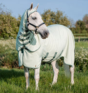 Top to tail protection, Horseware's premium XL hoody summer sheet acts as a barrier to protect your horse from summer skin irritations, flies and UV rays. Made from robust close woven 1000D polyester to prevent irritation from even the smallest of flies whilst offering UV protection. The unique material is super soft, comfortable and made to last for many seasons. The integrated neck cover fits over the ears for maximum coverage.