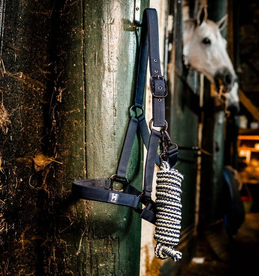 The Horseware® Newmarket Halter & Lead Rope set is a stylish staple. Durable polypropylene webbing is fleece lined over the poll and nose with ...