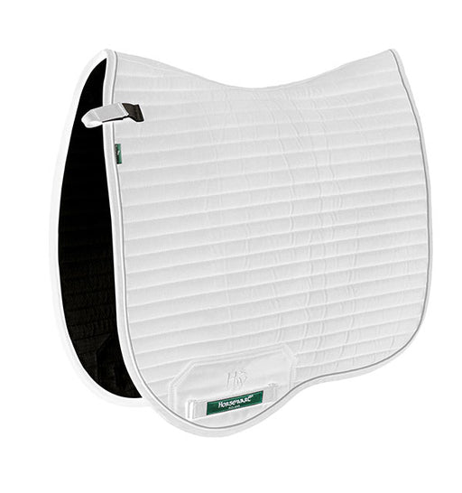 Lightweight and moisture wicking, the ideal everyday dressage pad. FEATURES Lightweight, breathable, modern cut pad Elasticated D-ring tabs Prote...
