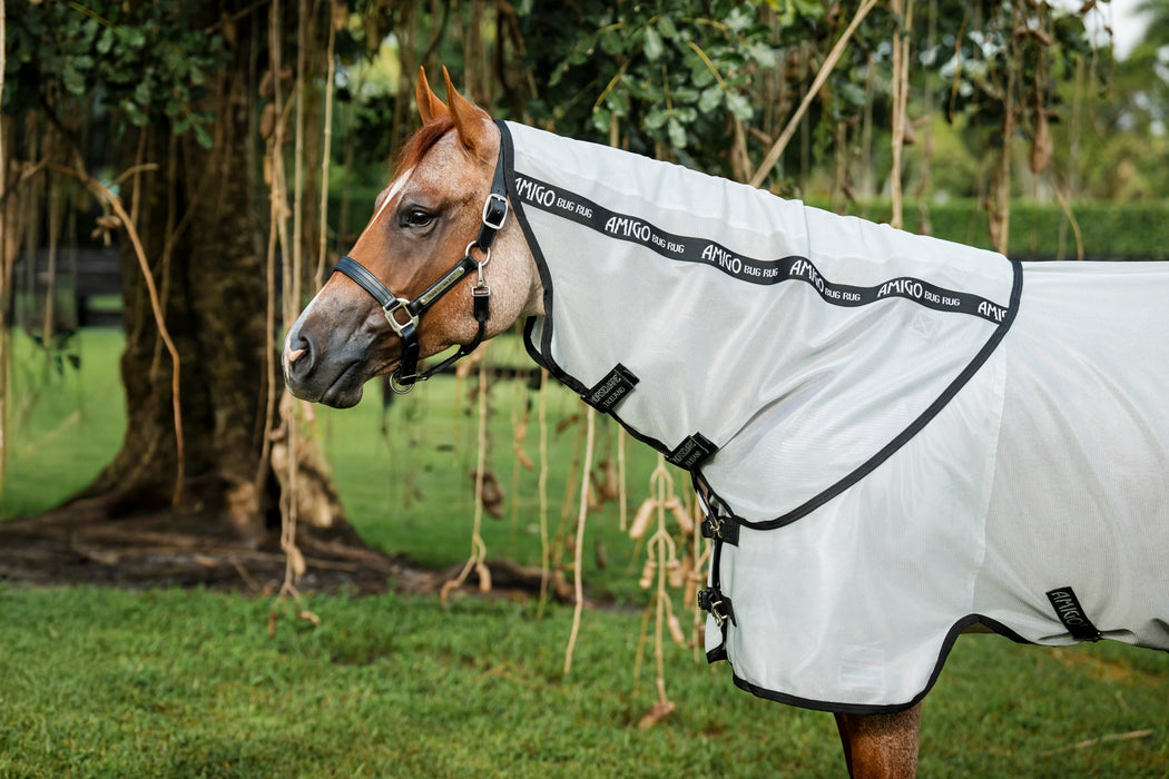 Simply attach to the Amigo® Bug Rug Quarter Horse Fly Sheet loops with easy on-off velcro strips.