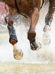 Integrated polythermal resin strike guards are contoured to protect the tendon and cannon bone and uniquely designed to radiate shock away from impact. Adaptive high-density foam lining is soft, breathable and shock absorbent with resistant coating to avoid water uptake.